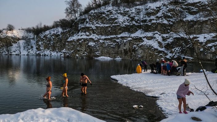 Krakow kentinde sular altında kalan bir kireç taşı madeninde bir araya gelen "kış yüzücüleri", dondurucu soğukta suya giriyor.