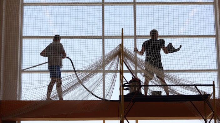Artan güvenlik önlemleri kapsamında, şehirdeki 15 nolu okulun pencereleri zırhlı folyo ile kaplanırken, bodrum katlarında da kum torbaları kullanılıyor.