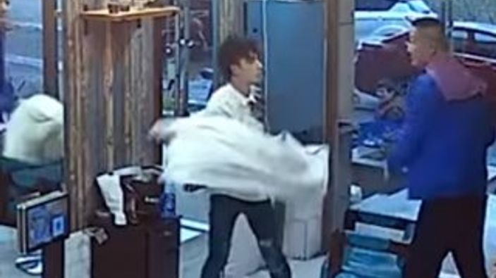 Çin'de saçının kesiminden memnun olmayan bir müşteri, dükkan içinde saçını kesen kuaföre yapmadığını bırakmadı.
