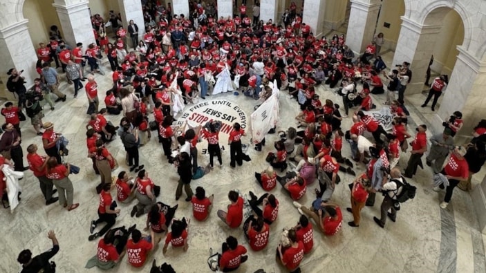 İsrail’in Filistinlilere yönelik saldırılarına tepki gösteren savaş karşıtı Yahudi göstericiler, ABD Kongresi’nde protesto düzenledi. Göstericiler, ABD hükümetine İsrail’e silah desteğini durdurma çağrısı yaparken polis tarafından gözaltına alındı.
