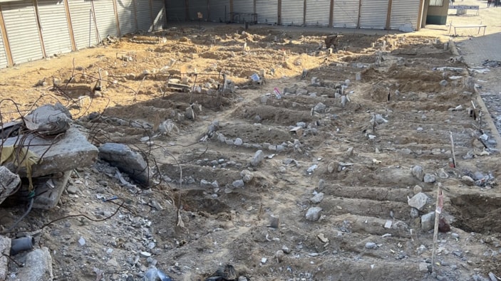 7 Ekim'den bu yana saldırı altındaki Gazze Şeridi'nde aileler, hayatını kaybeden yakınlarının cenazelerini, mezarlıklara ulaşamadıkları için rastgele kazılmış toplu mezarlara defnediyor.