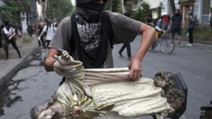 Şili’de göstericiler üniversite yaktı, kilise yağmaladı