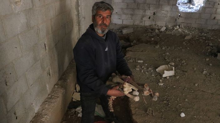 Suriye'de korkunç görüntüler: Bina temellerinden insan kemikleri çıkıyor