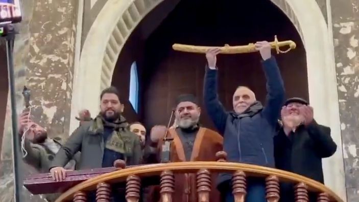 Tatari, Hama halkı tarafından düzenlenen törenle, geleneksel bir kılıç hediyesiyle onurlandırıldı.