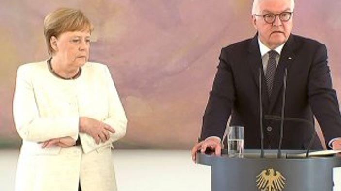 Almanya Cumhurbaşkanı Frank-Walter Steinmeier ile tokalaşan Angele Merkel'in, yine titrediği gözlemlendi.