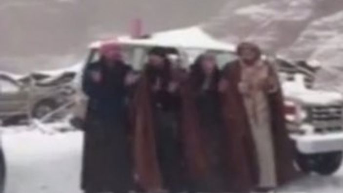 Kar yağışını gören Suudiler, sevinçten alkış tuttu.