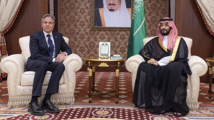 Resmi ziyaret için Cidde'de bulunan Blinken, burada Veliaht Prens Muhammed bin Selman ile görüştü.