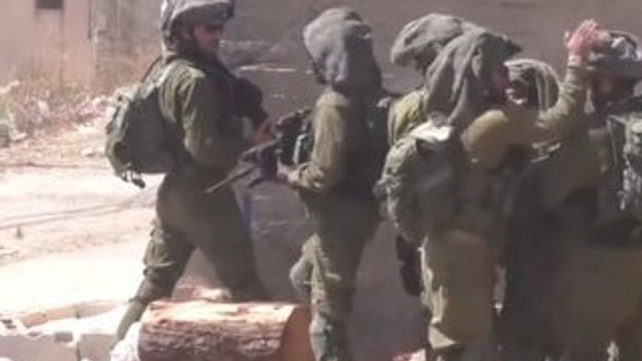 Batı Şeria'da bir köye baskın yapan İsrail askerleri, küçük çocukların attığı taşlardan korkunca komutanlarının gazabına uğradı.