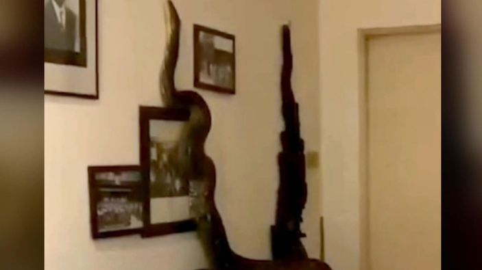 Olaya ilişkin videoda, yılanın evin pek çok bölgesini dağıttığı ve tavanda hasar bıraktığı görüldü.
