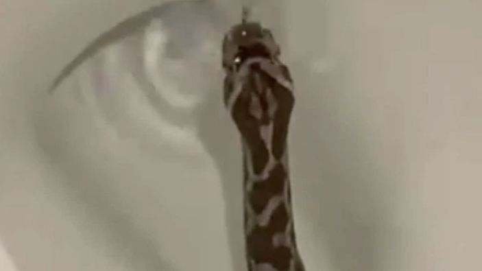 Klozet deliğinde yuvalanmış yılanı fark eden ev sahibi, o anları kayda alıp sosyal medyada paylaştı.