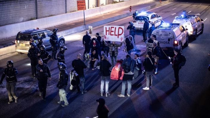 Tel Aviv'de, Gazze'deki İsrailli esirlerin yakınları otoyolu kapattı