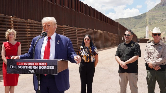 Seçimleri kazanması halinde başkanlığı döneminde Meksika sınırına inşa edilmeye başlanan duvarı tamamlama sözü veren Trump, ikinci döneminde uyuşturucu kaçakçılarına daha ağır cezalar verilmesi için çalışacağını ve düzensiz göçmenlere karşı tarihin en büyük sınır dışı etme operasyonunu başlatacağını söyledi.