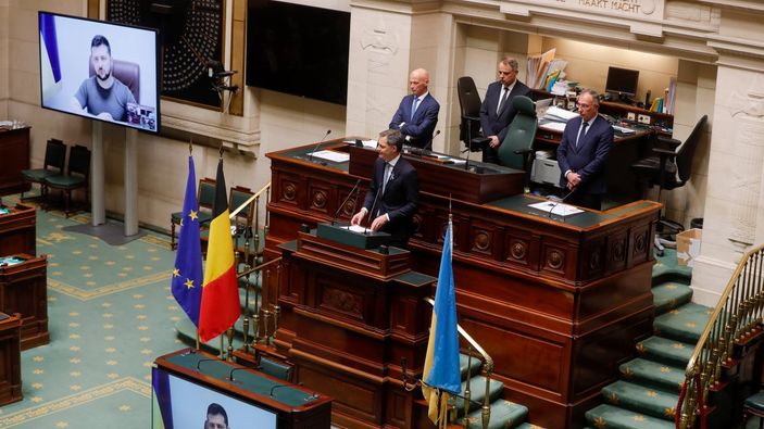Belçika parlamentosunda düzenlenen özel oturumda konuşan Zelensky, Belçika'ya verdiği destekten ötürü teşekkürlerini iletti.
