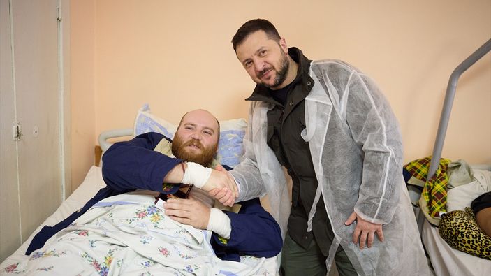 Ukrayna Devlet Başkanı Vladimir Zelensky, yaralı askerleri ziyaret etti.