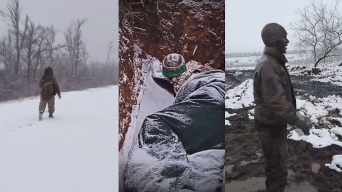 Ağır kış şartlarıyla karşı karşıya kalan Ukraynalı askerler, savunma hattında zorlu günler geçiriyor. Devlet Başkanı Zelensky, "İşler bu kadar zorlaşmışken, vatanımızın savunmasını sağlayanlara minnettar olmalıyız" dedi.
