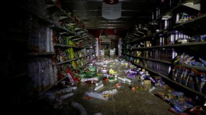 Elektrik kesintisini fırsat bilenler, marketleri yağmalamaya başladı. Güvenlik güçleri yağmaların önüne geçmek için alarma geçti.