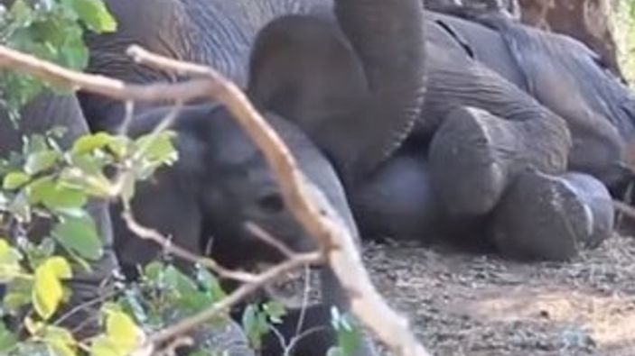 Yavrusunu şefkatle uyandıran anne fil İZLE