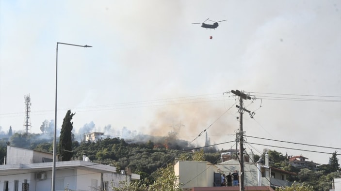 Yunanistan'ın Patra bölgesinde çıkan orman yangını kısa sürede geniş bir alana yayılırken, yangına havadan ve karadan müdahale ediliyor.