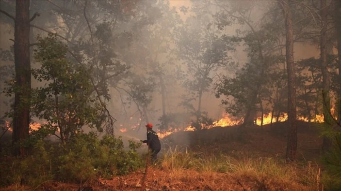 Ulaşılması zor bir alanda etkili olduğu kaydedilen yangını söndürme çalışmalarına 59 itfaiye ekibi ve 15 yangın söndürme aracının katıldığı bilgisi paylaşıldı.