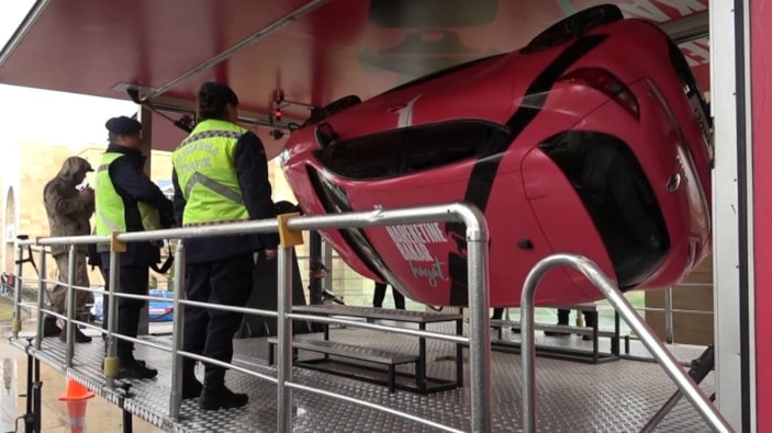 Jandarma Genel Komutanlığı’na ait ‘Emniyet Kemeri Simülasyon Aracı’nda vatandaşlara uygulamalı trafik eğitimi verildi.