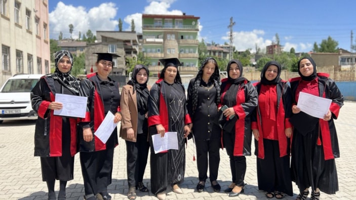 20 yıl önce İran'dan Yüksekova'ya gelin olarak geldim. Okumam yazmam yoktu. Okumayı yazmayı çok severdim. Okuma yazma hep hayalimdi. Halk Eğitim Merkezi tarafından açılan bu kursa kayıt yaptım. Yaklaşık 6 aydır düzenli olarak kursa devam ettim. Hem okumayı hem de yazmayı öğrenip bugün mezun oldum. Çok mutluyum. Bu kurslar günlük hayatımızı kolaylaştırdı. Bugün de cübbe giyip kep attım. Emeği geçen herkesi teşekkür ederim.