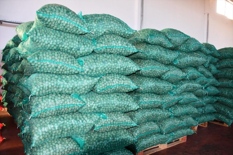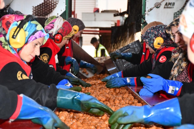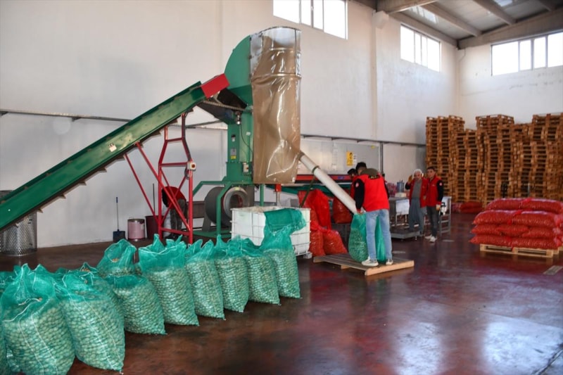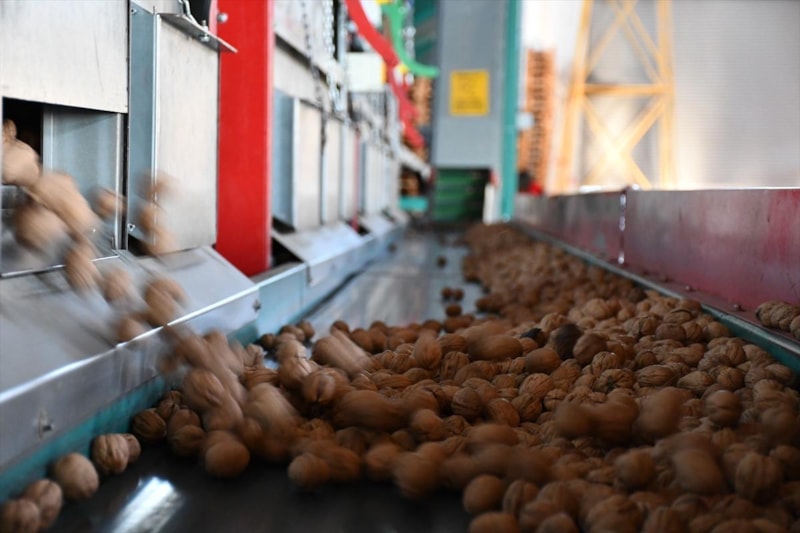 Hasat döneminde yaklaşık 500 kişinin çalıştığı bahçede kurulan makinalarla cevizler, bütün aşamalardan geçerek paketlenip sofralara hazır hale getiriliyor.