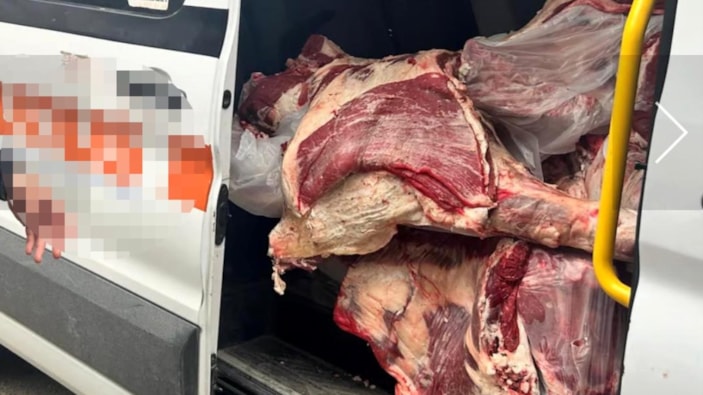 Ankara'da bir zincir markete ait personel minibüsünde yerde ve koltukların üzerinde uygunsuz koşullarda et taşınırken çekilen video sosyal medyada paylaşılınca İl Tarım ve Orman Müdürlüğü ekipleri, harekete geçerek denetim yaptı ve ceza kesti.