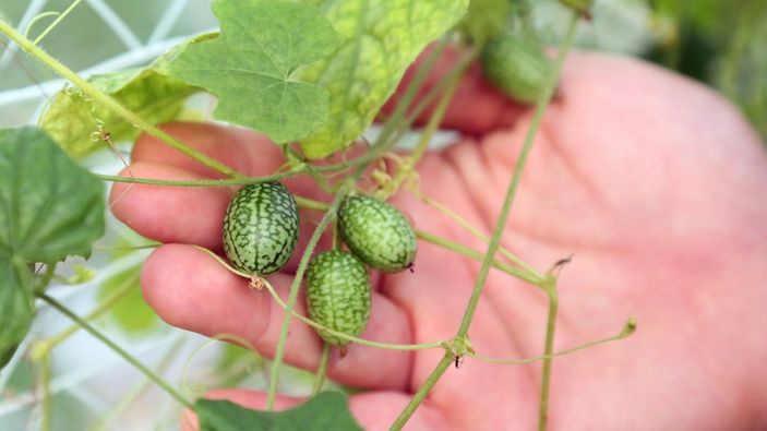 Antalya'da mini sebzeler kategorisinde üretilen yeni ürünü minyatür karpuz, görenleri şaşırtıyor. Ağırlığı sadece 5 gram olan mini karpuzun tadı ise salatalığı andırıyor.