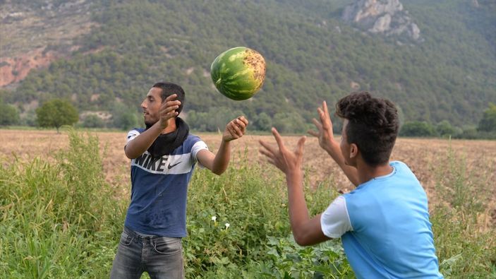 Tarlada çalışan Sevda Çetinkaya ise karpuz kesimi yaparak mesailerini sürdürdüklerini söyledi. Karpuzun ekiminin nisan ayının başlarında yapıldığını belirten Çetinkaya, "Çok erken saatte geliyoruz. Çünkü sıcakta çok fazla çalışılmıyor. Güç sarf edilen bir iş bu." diye konuştu.