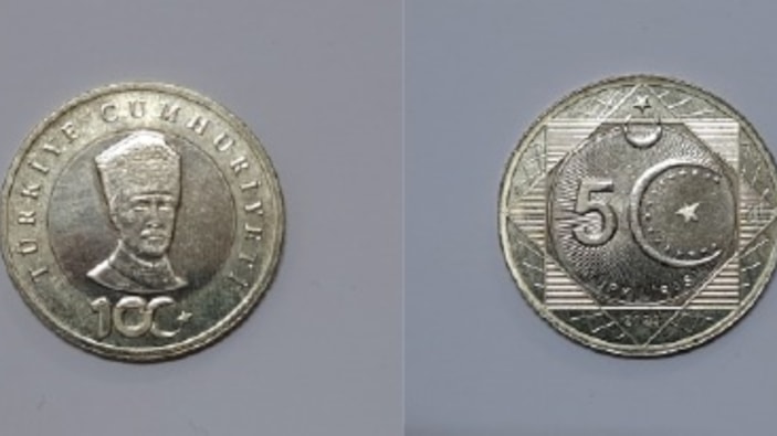 Hazine ve Maliye Bakanlığı'nın, Cumhuriyet'in 100. yılı kapsamında bastırdığı "5 Türk Lirası" hatıra parası yarın tedavüle sunulacak