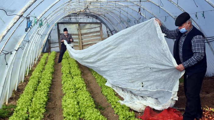 Eskiden soba da yakıyorduk ürün donmasın diye. Şu an öyle yapmıyoruz. Farz edelim ki eksi 10 derecenin de altına düştü, bir tane daha örtü çekiyoruz ürünün üzerine." dedi.