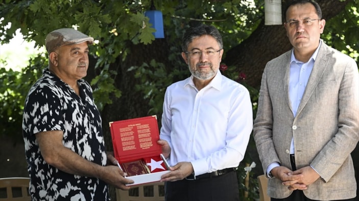 Bakan Yumaklı, 15 Temmuz'da FETÖ'cülerce havalandırılan F-16 jetlerini durdurmak için tarlasındaki saman balyalarını yakan Bitik Mahallesi Muhtarı Hicabi Bitik ve mahalle sakinleriyle bir araya geldi.