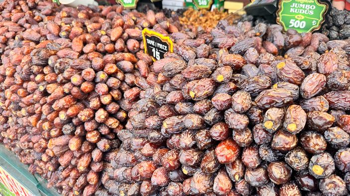 Hurma, Ramazan'ın vazgeçilmezleri arasında yer alırken, Eminönü'ndeki tezgahlarda en fala hurmaya ilgi gösteriliyor.