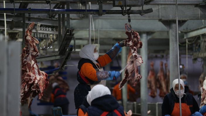 Karkas etleri bir çırpıda elden ele parçalara ayıran kadınlar, mesleklerini severek yaptıklarını ve çok da zor olmadığını söylüyor. Her gün 150 ton etin işlendiği tesislerden çıkan ürünler Türkiye’nin dört bir yanına ulaştırılıyor.