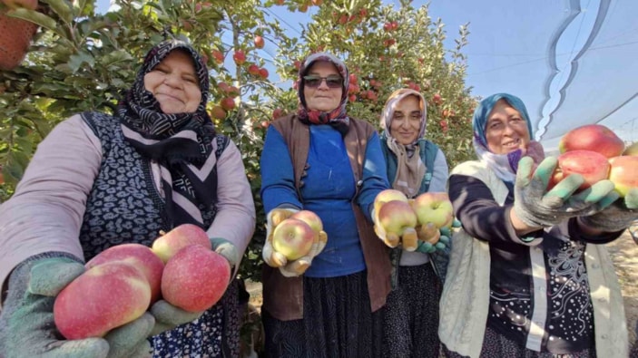 Bayram, Türkiye’nin en lezzetli elması olarak bilinen pink lady cinsi elmanın şu an hasat edildiğini ifade ederek şöyle konuştu: