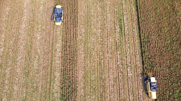 Toprak Mahsulleri Ofisi (TMO) Genel Müdürlüğünce, 15 Ağustos'ta mısır alım fiyatının 2025 sezonu için ton başına 11 bin 300 lira olarak belirlendiğinin açıklanmasıyla tarlalarda artan hareketlilik, drone'la havadan görüntülendi.