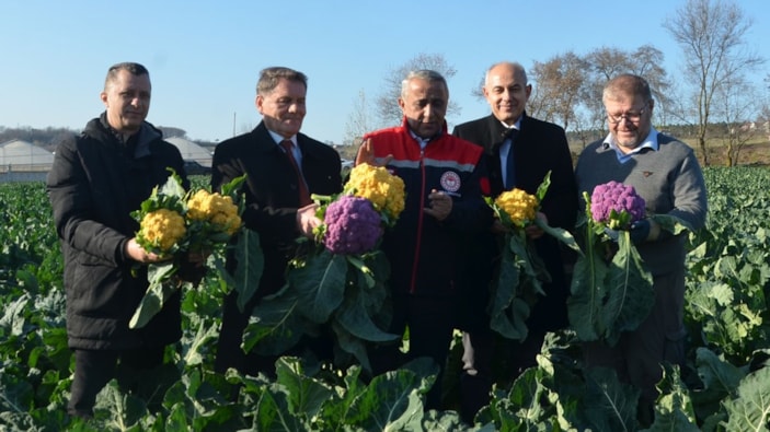 Bu sene İlçe Tarım ve Orman İlçe Müdürümüzün tavsiyesi ve desteğiyle 20 dönümlük bir alanda renkli karnabahar üretimini denedik. Turuncu ve mor karnabaharlarımız oldu. Bu çiğ olarak da yenilebiliyor. Aynı brokoli gibi. Salatası ve yemeği de oluyor. Renkleri tamamen doğal, genetiğiyle oynanmış değil. Fideler Tarım Bakanlığımızdan sağlandı. Onların tavsiyeleri, yönlendirmeleri, bilgilendirmeleri doğrultusunda dikim yapıldı. Şu anda renkli karnabahar hasadına başladık. Bu sene karnabahar fiyatları iyi. Çiftçinin yüzü bu noktada gülüyor.