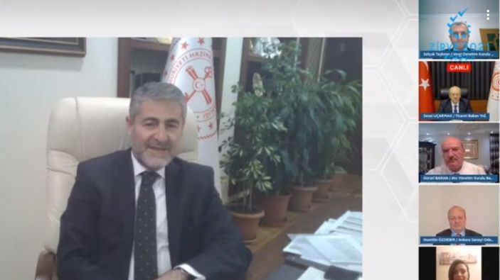 Nebati, “Özellikle 600 milyar liraya yaklaşan desteklemeler ile kredi hacminin genişlemesi, kısa çalışma ödeneği ile ilgili atılan adımlar, kobilerden büyük işletmelere kadar elde etmiş olduğu kazanımlar ile Türkiye 2020 yılını atlatmış oldu. Şimdi 2021 yılı elde edilen kazanımlar ve özellikle de sıkı para politikası ile döviz fiyatlarının kontrol altına alınması için atılan adımlarla da farklı bir noktaya gidiyor. Türkiye bir tarafta büyüyüp gelişirken öbür tarafta da 2021’de atılmış olan adımlar ile kaybedilmiş olan zamanı hızlı bir şekilde telafi edecek adımlar atıyor.” ifadelerini kullandı.