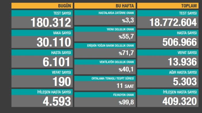 Türkiye'de koronavirüs salgınında bugün 190 vatandaşımız yaşamını yitirdi.