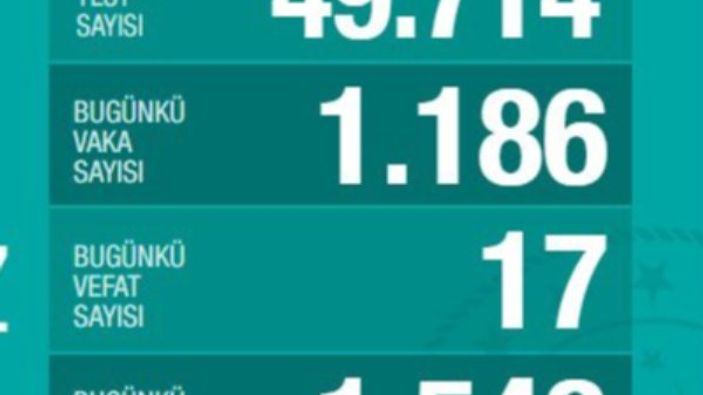 Bakan Koca'nın paylaştığı tabloya göre bugün yapılan testler sonucu 1186 yeni vaka tespit edildi. Toplam vaka sayısı 202 bin 284 oldu.