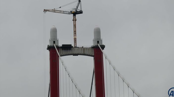 Çanakkale Boğazı'nda, Lapseki ve Gelibolu ilçeleri arasında inşa edilen 1915 Çanakkale Köprüsü'nün kulelerine top mermisi figürlerinin yerleştirilmesi çalışması tamamlandı.