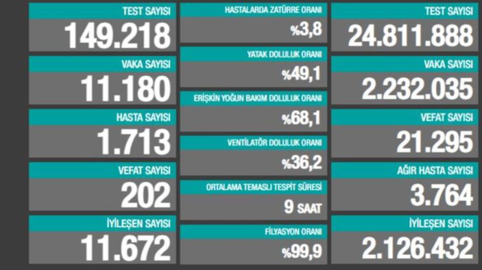 Bakan koca'nın paylaştığı tabloya göre bugün korona nedeniyle 202 kişi daha hayatını kaybetti.