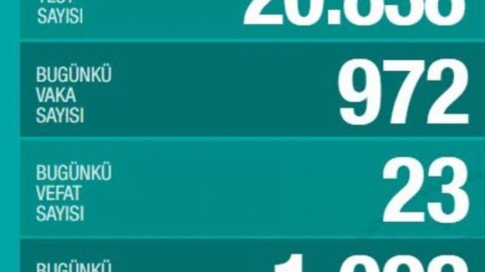 Bugün yapılan test sonucunda ise 972 yeni vaka tespit edildi.