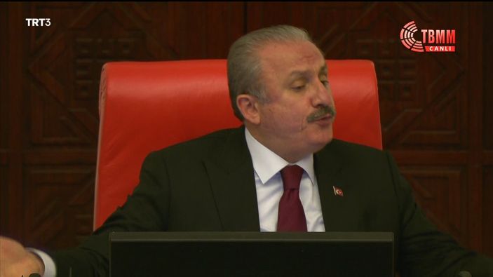 AK Parti sıralarında tepkilerin devamı sonrası Dervişoğlu konuşamayınca, araya Meclis Başkanı Mustafa Şentop girdi.