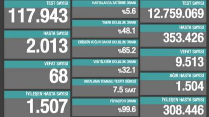 Bakan Koca'nın paylaştığı tabloya göre bugün 2013 kişi daha koronavirüs hastalığına yakalandı.