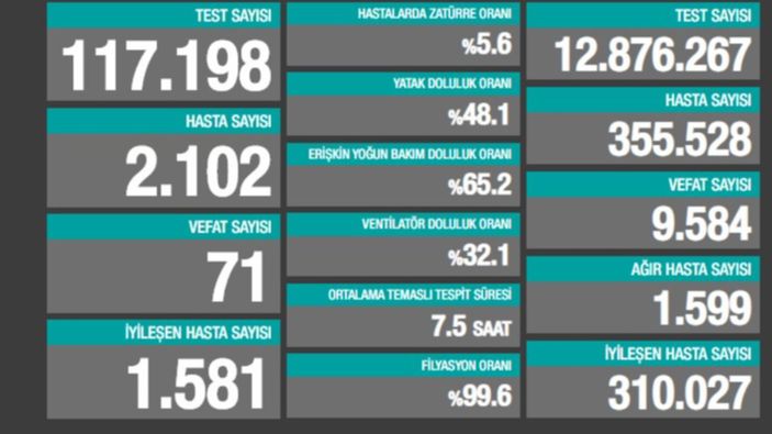 Bakan Koca'nın paylaştığı tabloya göre bugün 2102 kişi daha koronavirüs hastalığına yakalandı.