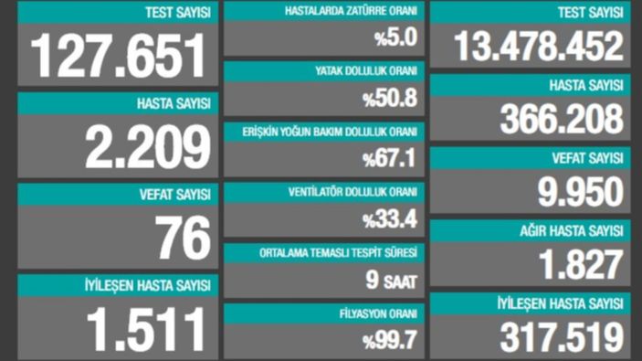 Türkiye'de koronavirüs salgınında bugün 76 vatandaşımız hayatını kaybetti.