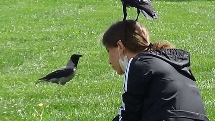 3 yıldır elleriyle beslediği kargayı yine aç bırakmadı ViDEO