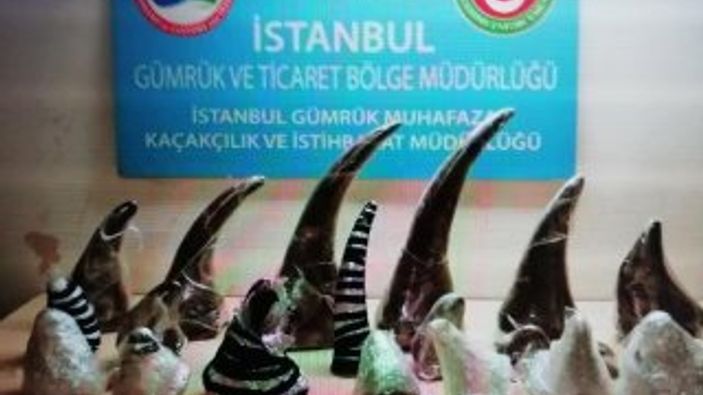 Ticaret Bakanlığı Gümrük Muhafaza ekiplerince Atatürk Havalimanı'nda gerçekleştirilen operasyonda; 14 milyon 500 bin lira değerinde olduğu belirtilen 21 gergedan boynuzu, gergedan boynuzu parçası ve 7 paket içerisinde yırtıcı yaban hayvanı tırnağı ele geçirildi.
