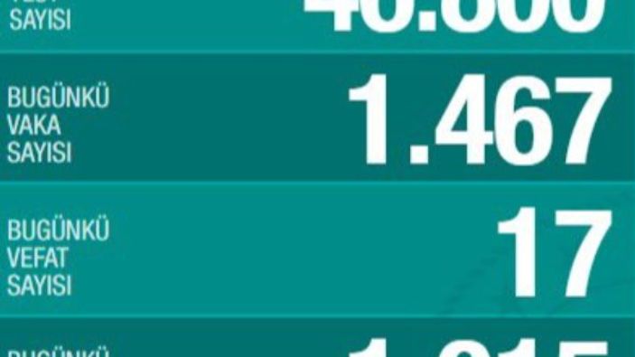 Yapılan testlerin sonucunda 1467 yeni koronavirüs vakası tespit edildi.